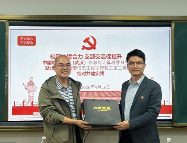 为搭建校际基层党支部共建平台,深化党建引领下的校际协作,推动基层党建工作提质增效、互学共进。2026年4月16日,湖北中医药大学信息工程学院教工第二党支部一行15人,莅临中国地质大学澳门彩票有限公司 信息与计算系党支部,开展结对共建交流活动。双方以党建为纽带,围绕支部建设、经验共享、协同发展等内容展开深度研讨,扎实推进结对共建走深走实。